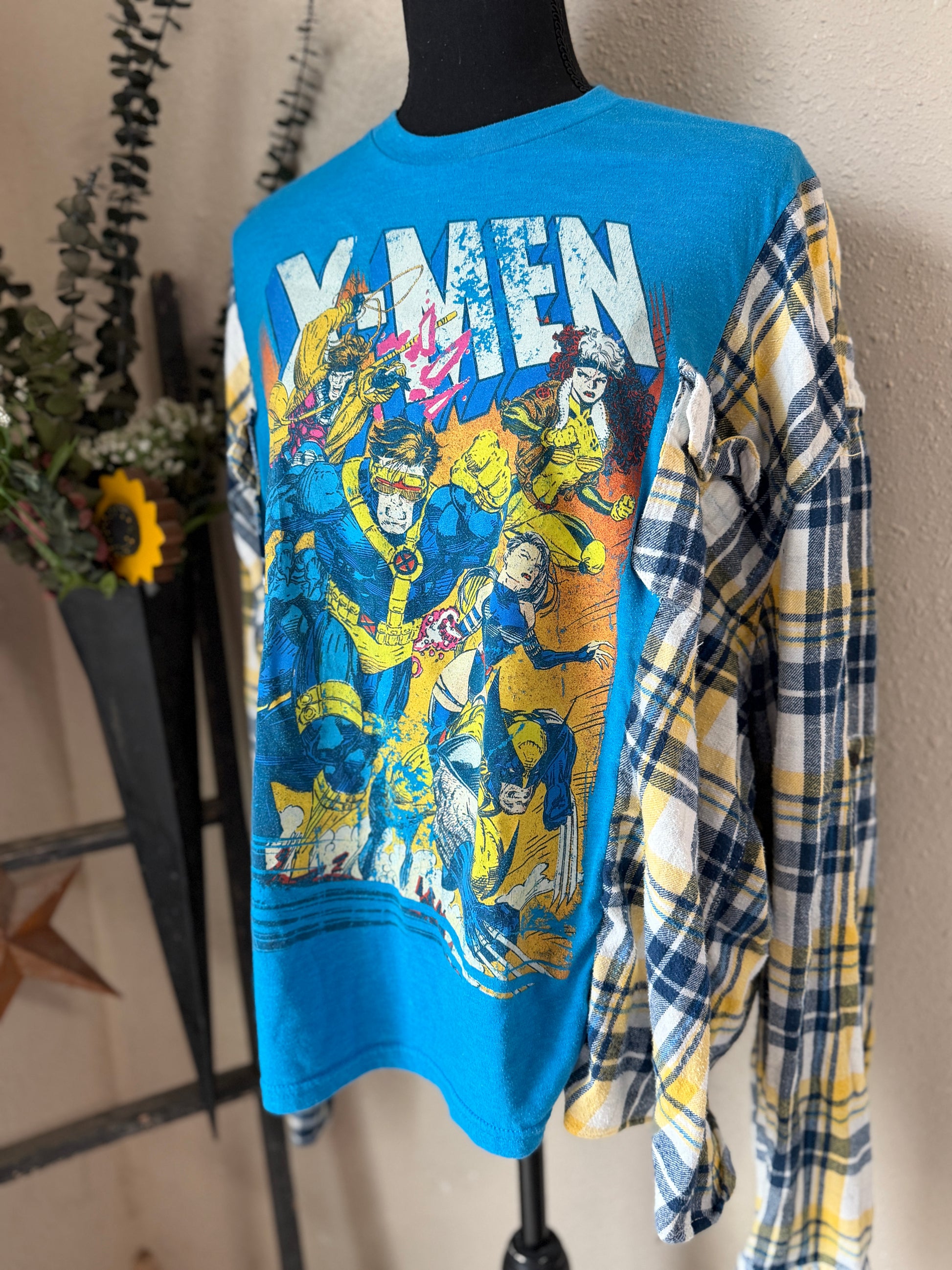 Marvel X-Men blue tee reworked with a complimenting flannel!